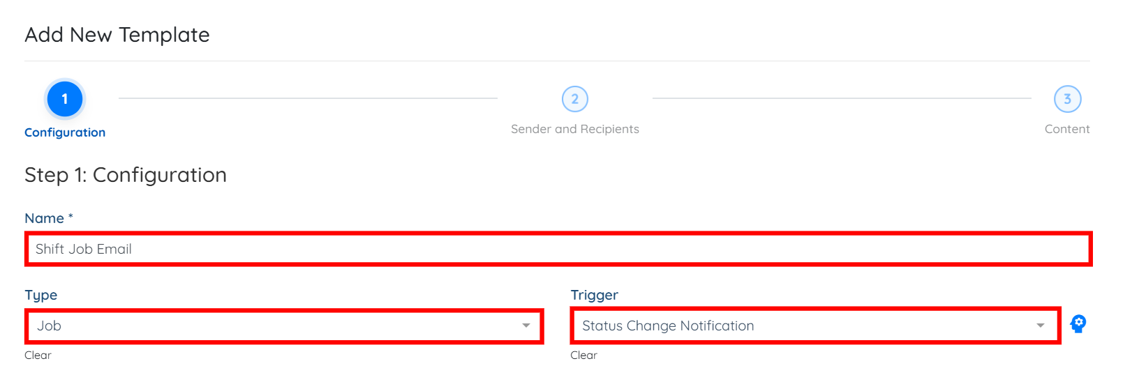 Step 3: Enter a name for the template, select Job as the Type, and then select the Status Change Notification trigger.