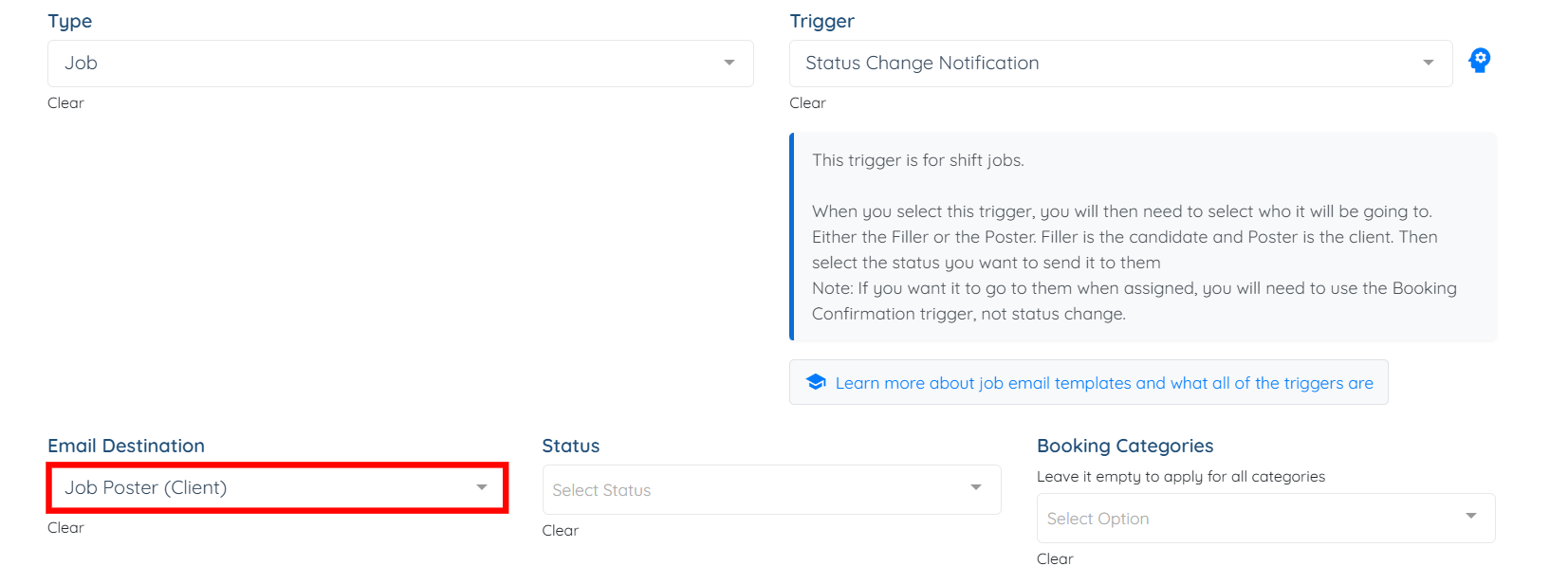 Step 4: Select the Job Poster (Client) option in the Email Destination field.