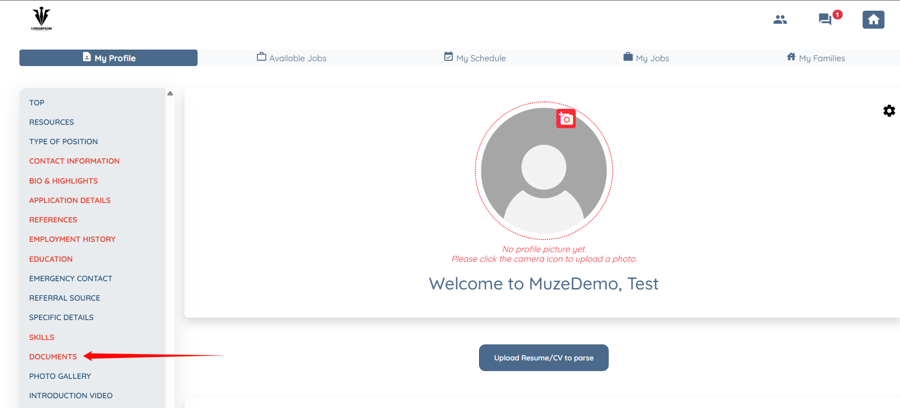 Step 1: On your profile, click the DOCUMENTS option located in the left-hand navigation bar.