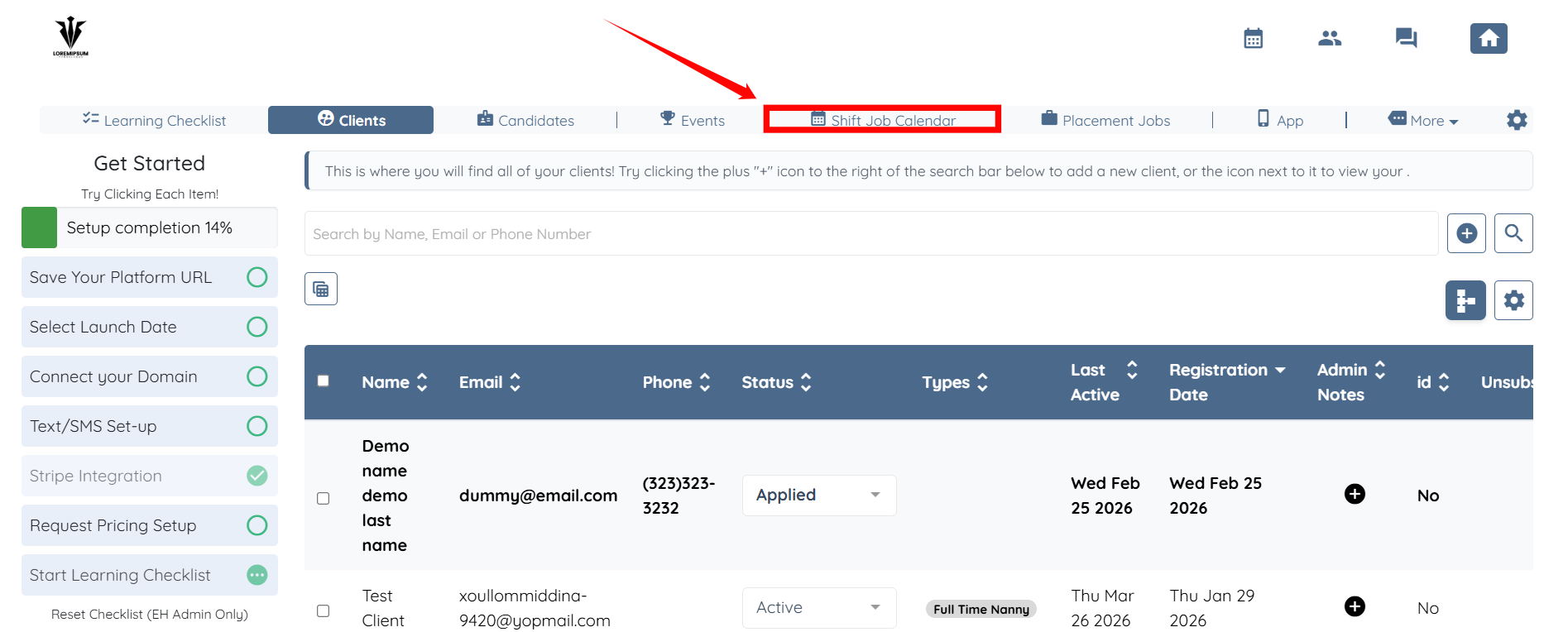 Step 1: Log in to your agent dashboard and click Shift Job Calendar in the navigation bar.