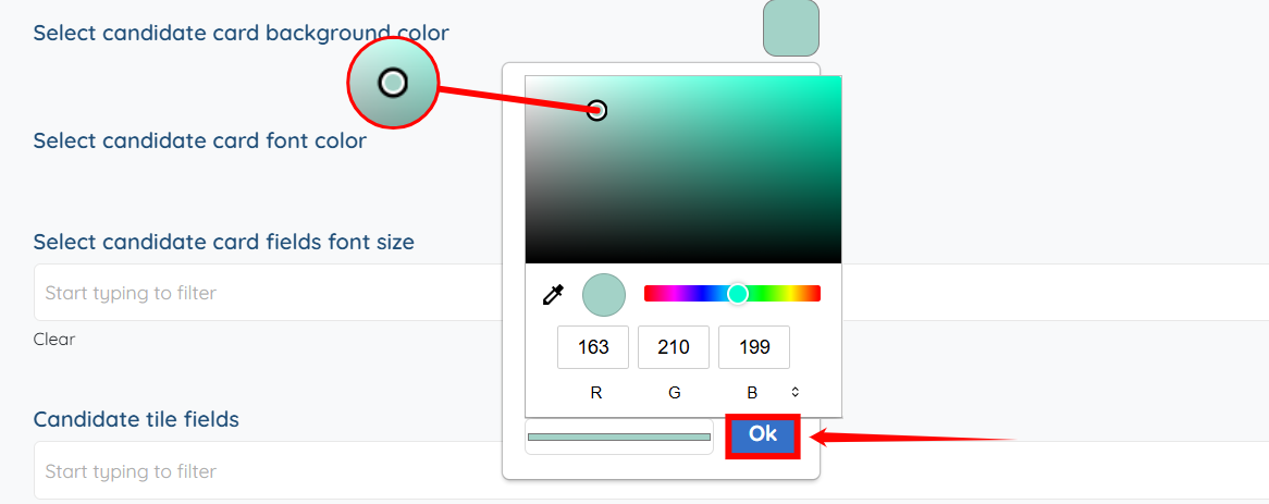 Step 7: Similarly, select the font color for the candidate card. The settings are saved automatically.
