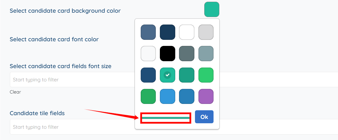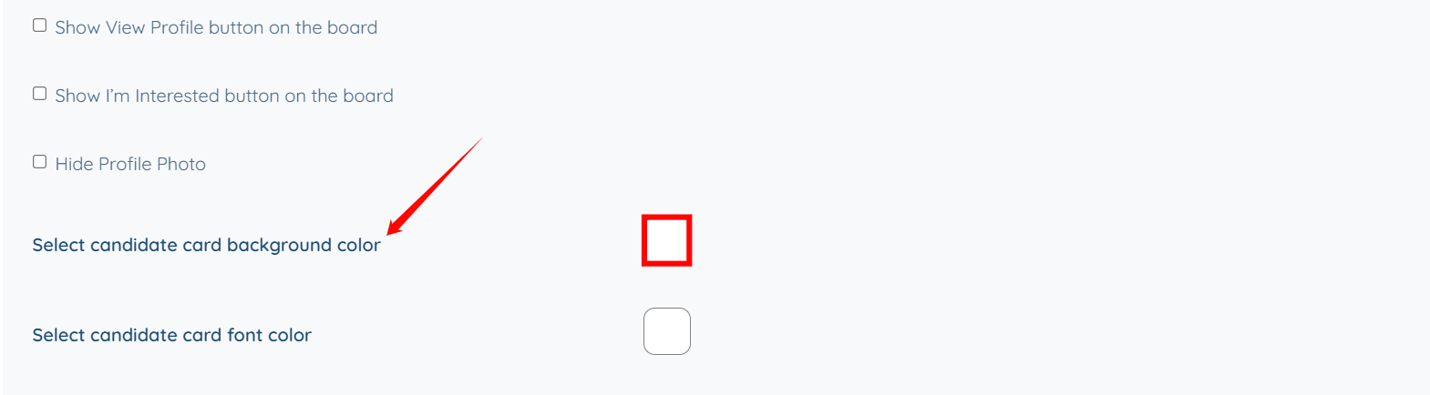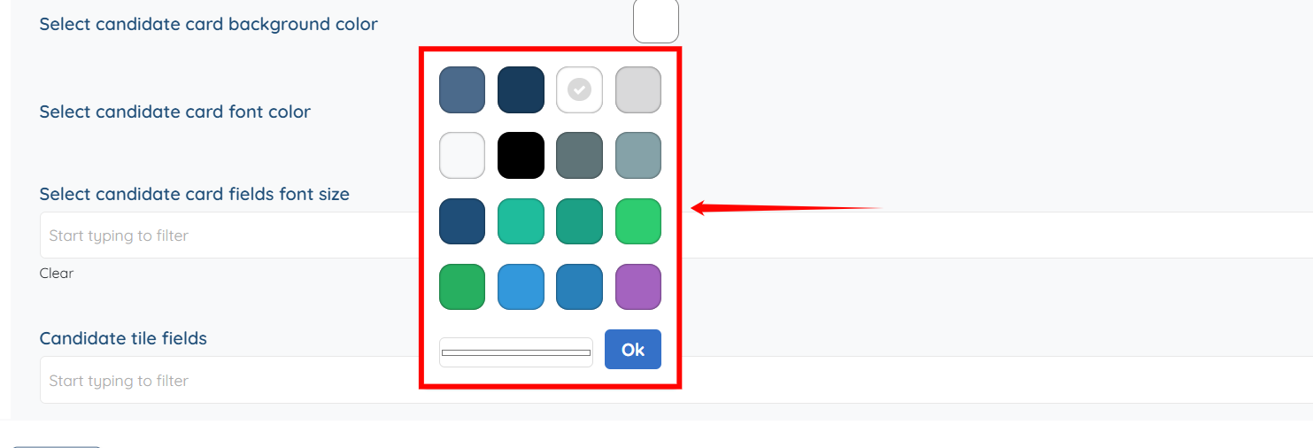 Step 3: Click the color tile next to the Select candidate card background color heading to view the available color options.