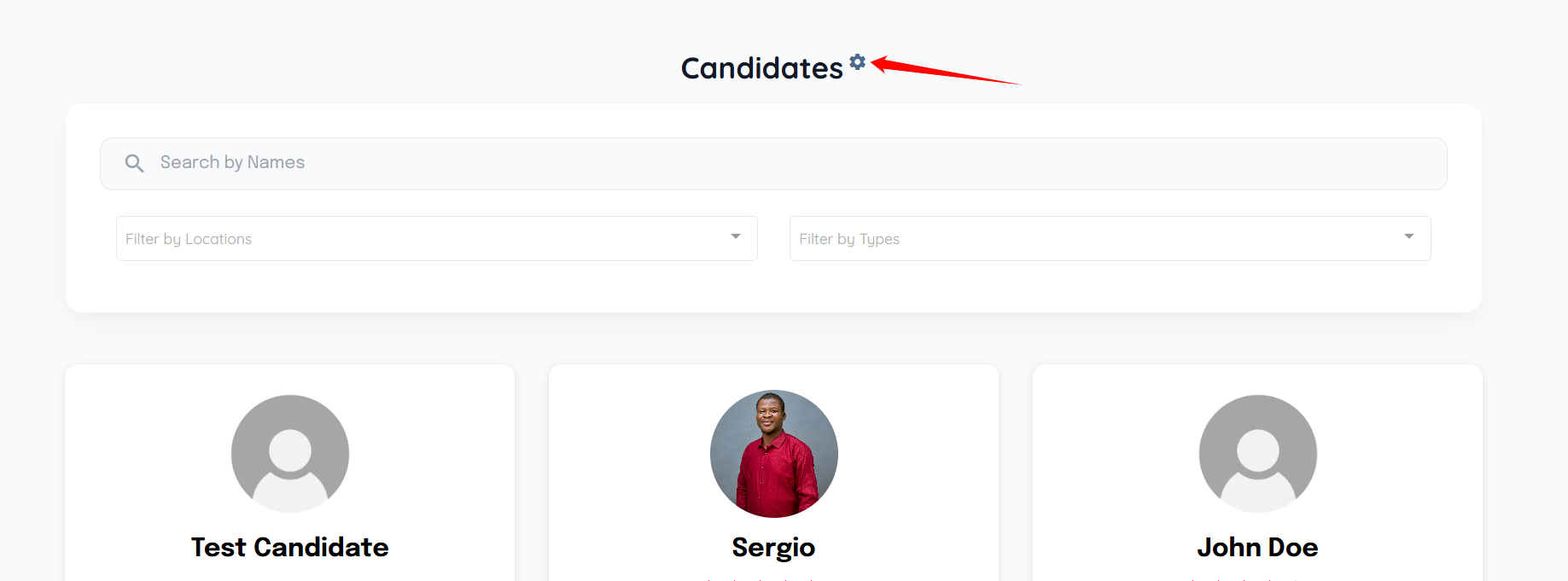 Step 2: Click the Gear icon located next to the Candidates heading.
