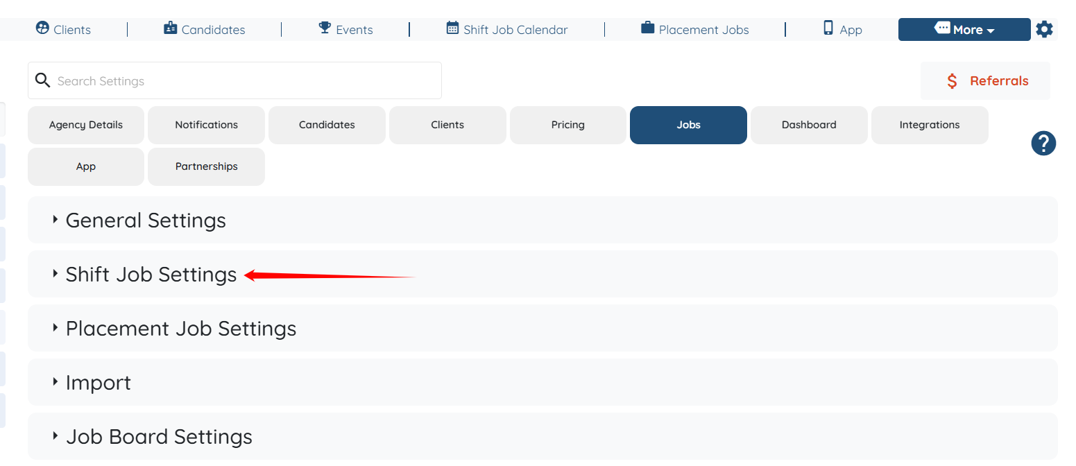 Step 3: Click the Shift Job Settings option to expand its details.