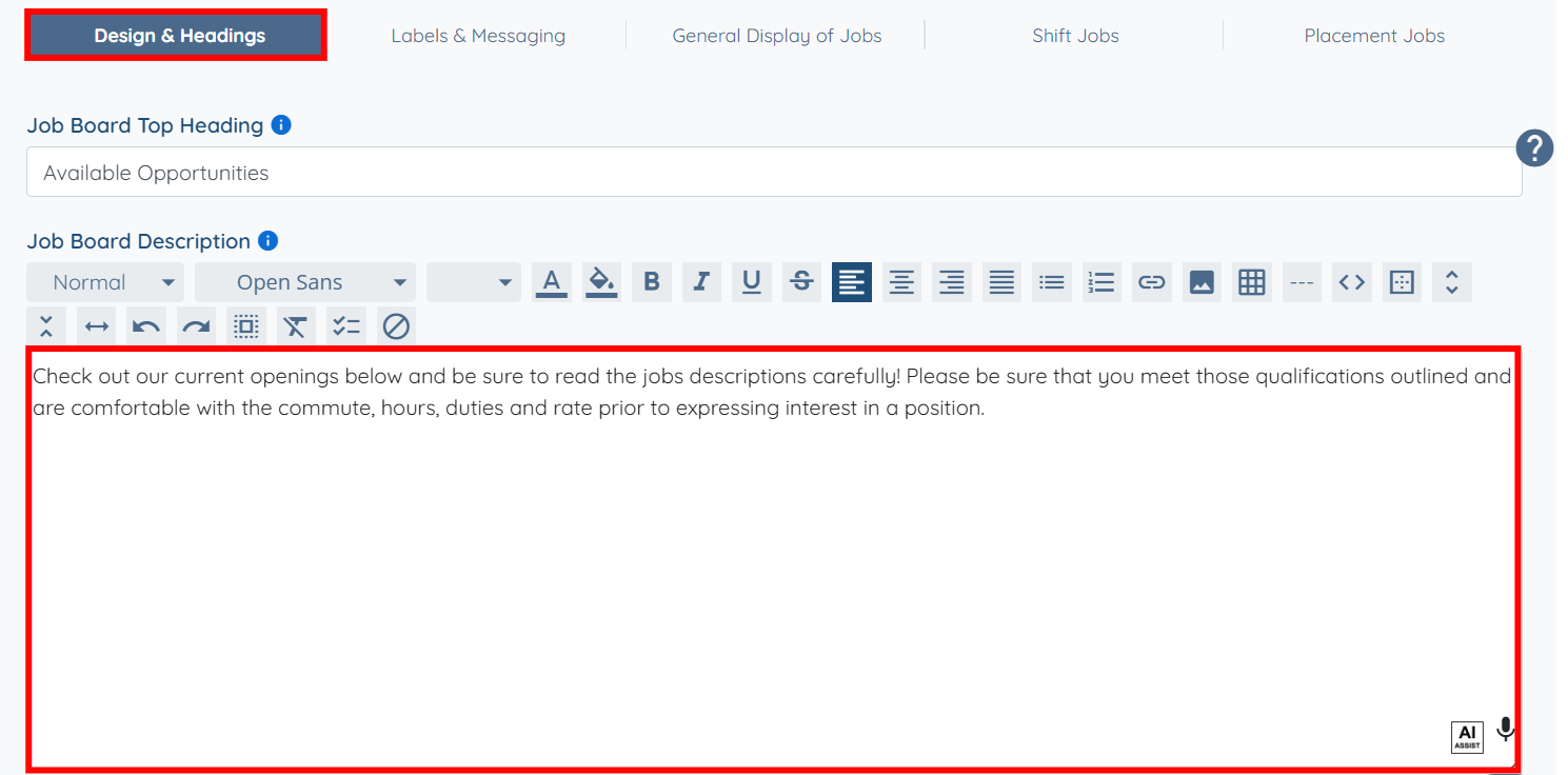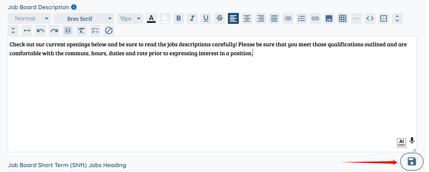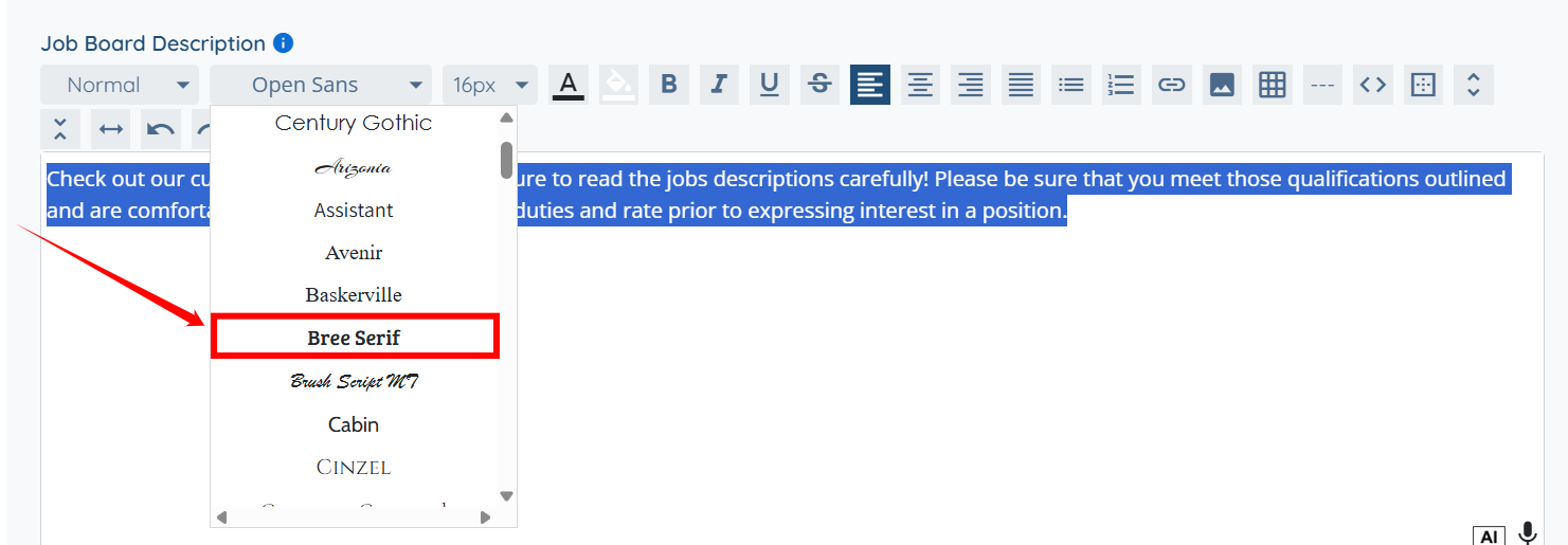 Similarly, you can use the text editor to change the text color and add links or images to the Job Board description.
