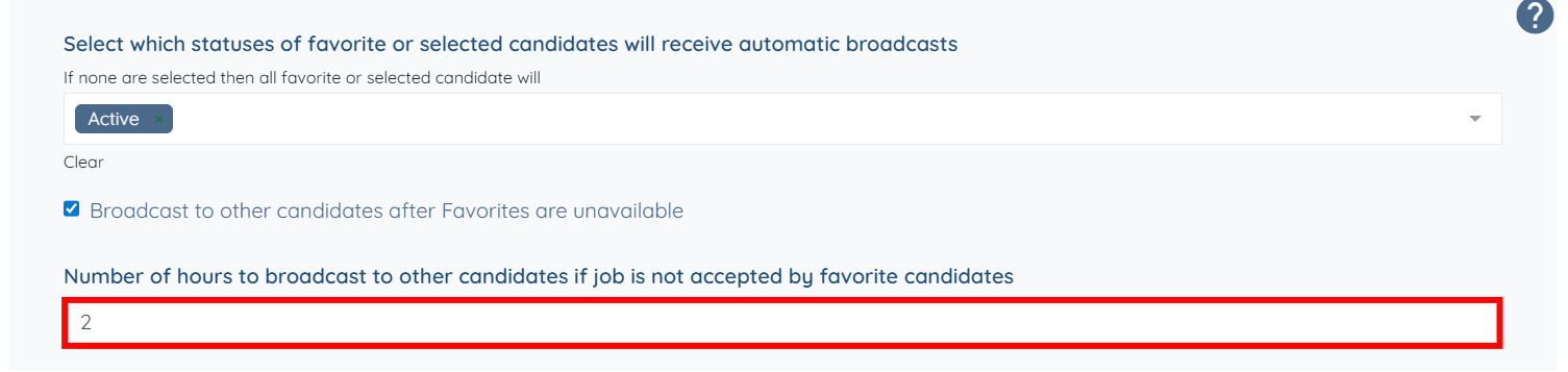 Step 9: Enter the number of hours after which the job will be broadcast to other candidates if the favorite candidates do not accept the job.