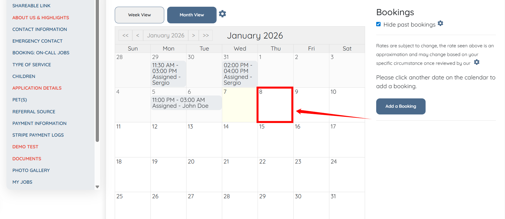 Step 3: Click the BOOKING: ON-CALL JOBS option on the left-hand side navigation bar.