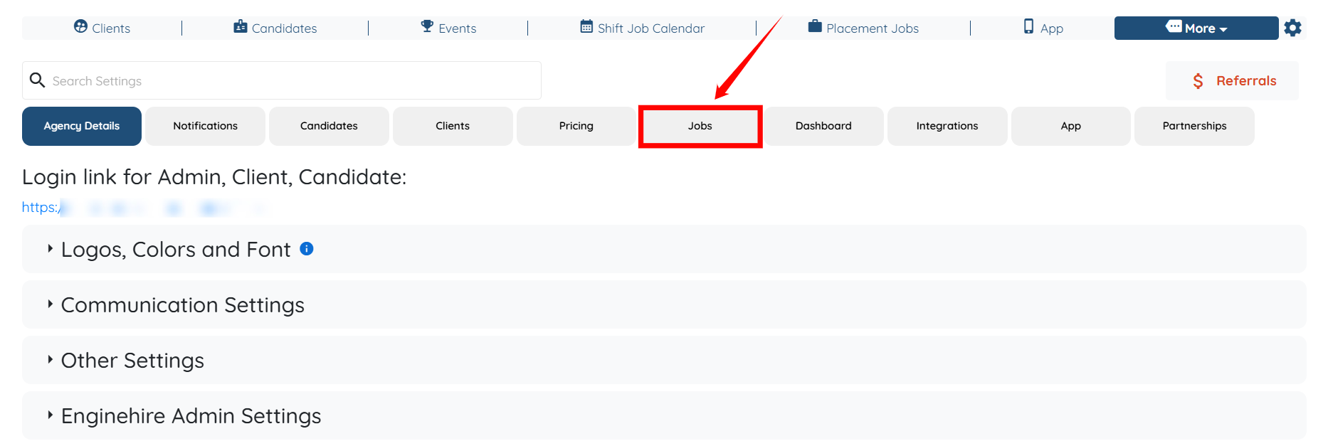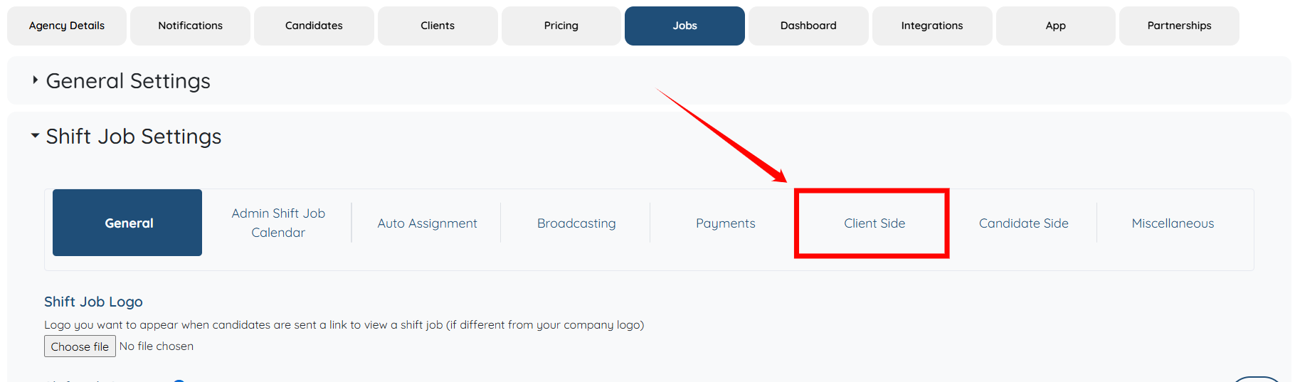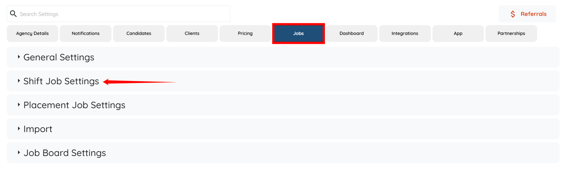 Step 3: Under the Jobs tab, expand the Shift Job Settings option.