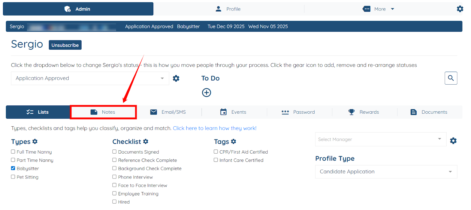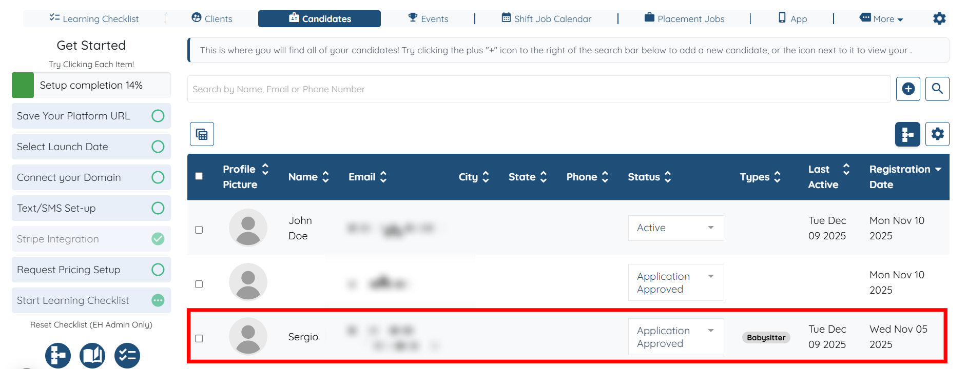Step 2: Click any of the candidates from the list for whom you want to add a note to their profile.