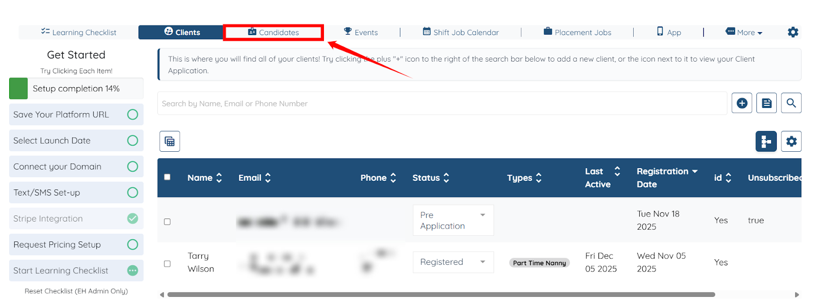 Step 1: Log in to your dashboard and click Candidates in the top navigation bar.