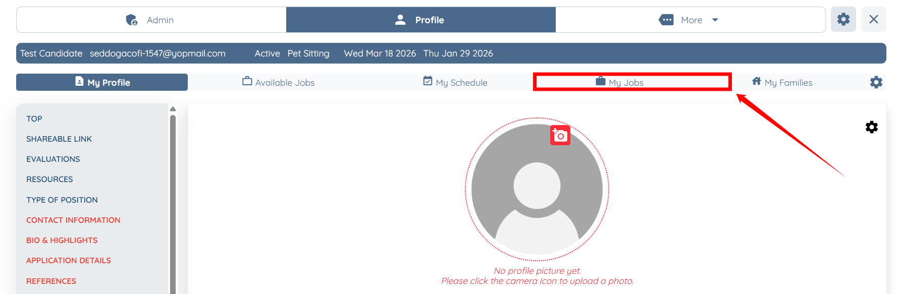 Step 3: Click the My Jobs tab from the list of available tabs.
