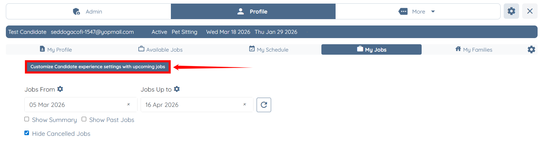 Step 4: Click Customize Candidate experience settings with upcoming jobs button.