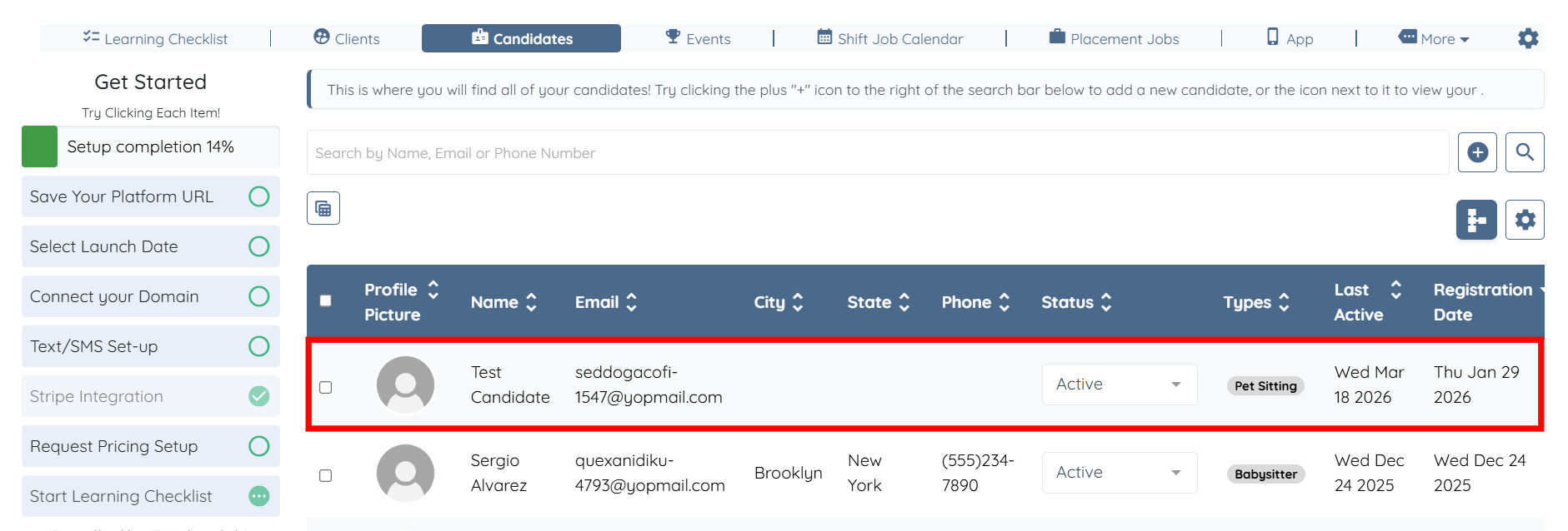 Step 1: Log in to your agent dashboard and click Candidates in the navigation bar.