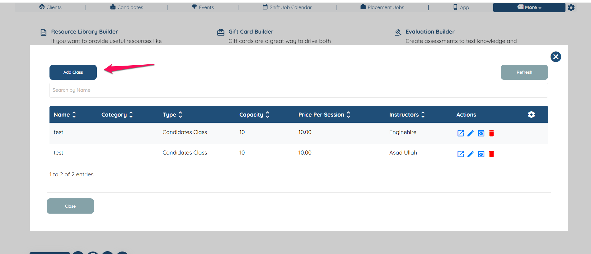 Select the Client Profile you'd like to add your class available and click the Pencil Icon.