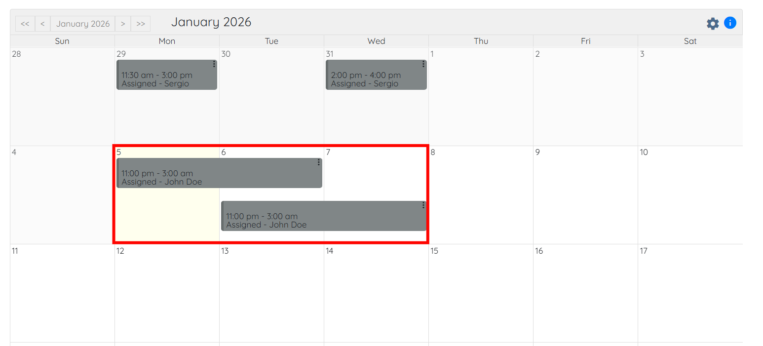 The overnight shift jobs will display successfully on both calendar days.