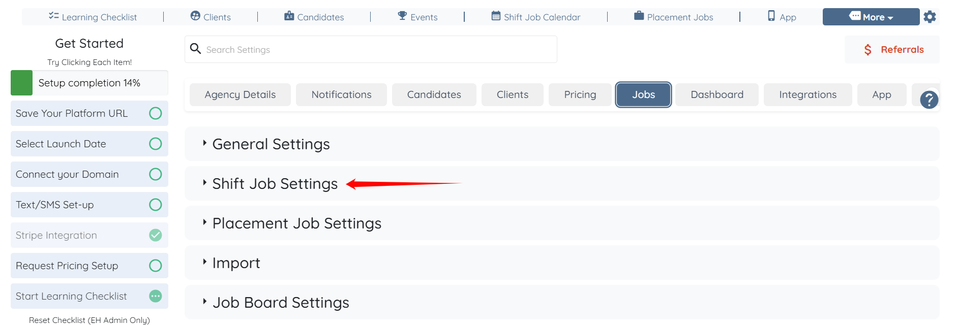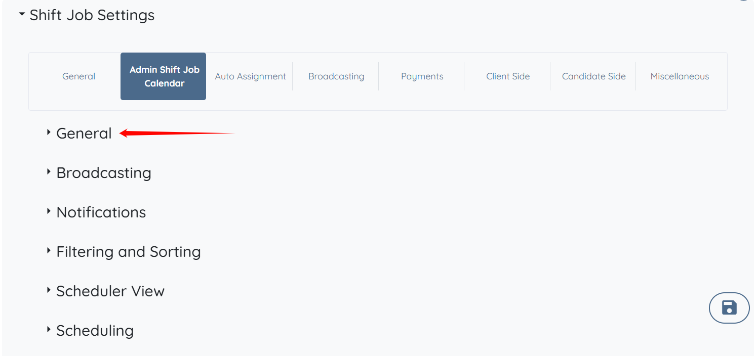 Step 3: Click the Shift Job Settings option to expand its details.
