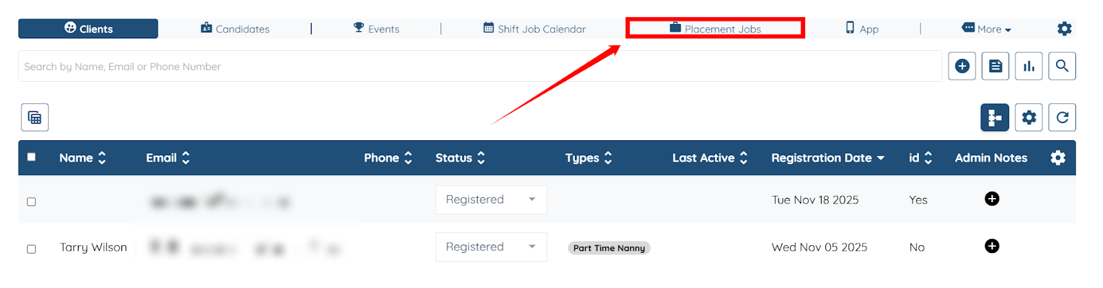 Step 1: Log into your agent dashboard, and click the Placement Jobs from the top navigation bar.