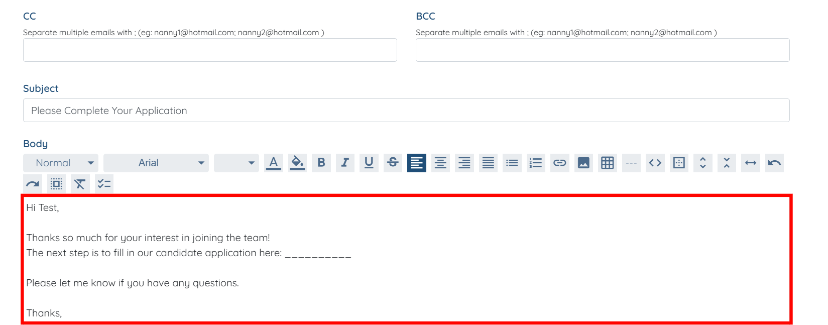 Step 6: Click the Send Email button if you want to send the email to notify candidate.