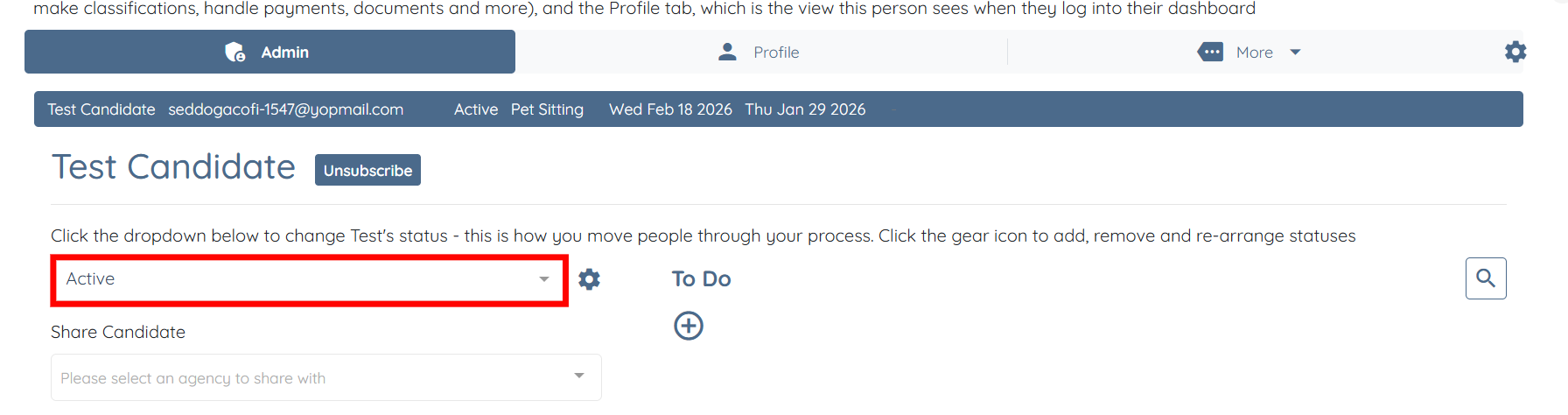 If you have created a test profile with your own email address, you can see how the status change email notification is when it is sent.