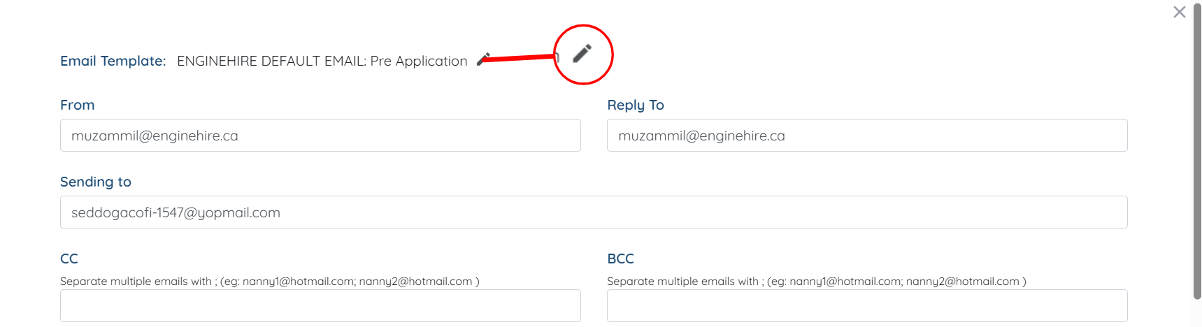 Step 7: You can edit this email template for all future updates by clicking the Pencil icon at the top of the email pop-up.