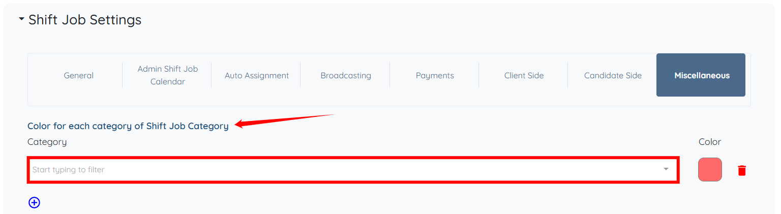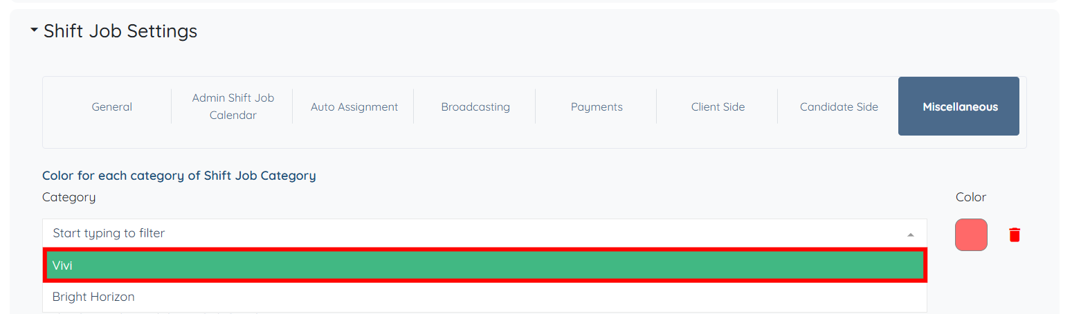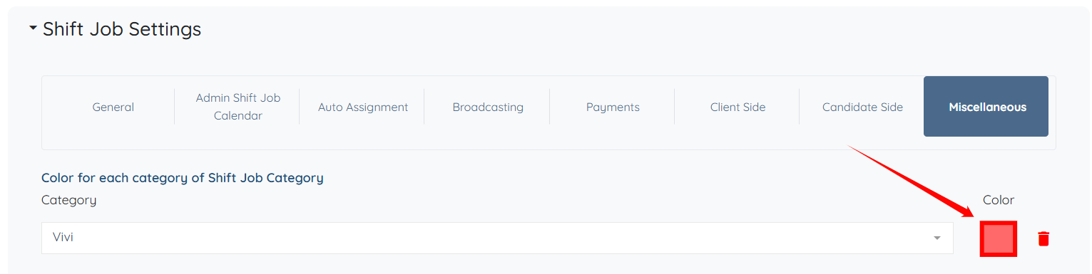 Step 7: Click the box under the Color for each category of Shift Job Category field to activate the dropdown list.