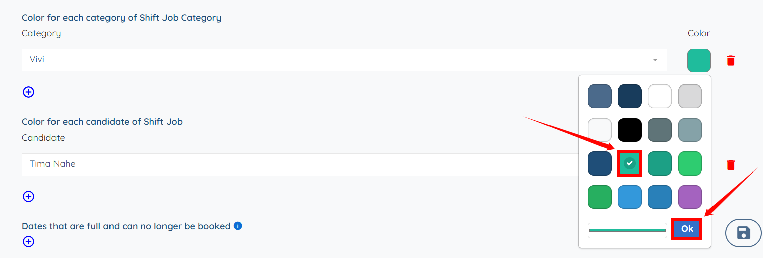 Step 5: Check the Show shift job color in candidate job board checkbox.