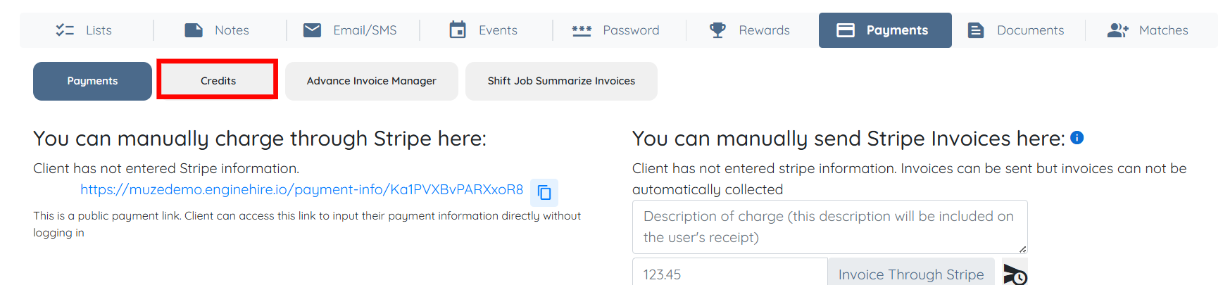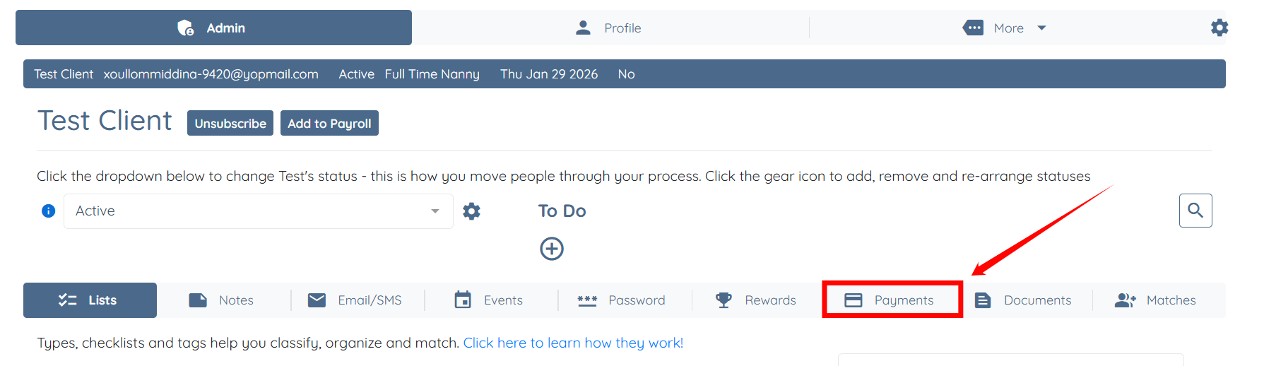 7. Select Payments tab.