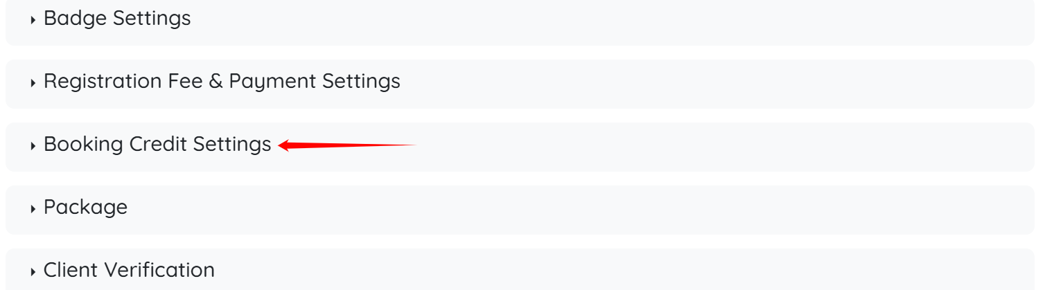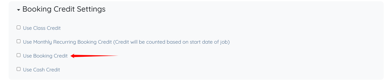 3. Click Booking Credit Settings option.