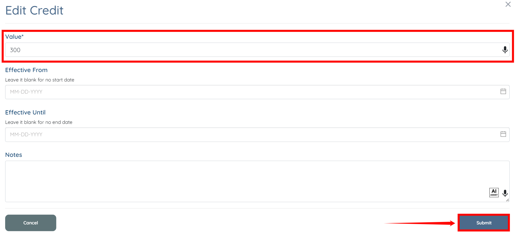 9. Select Add Credit button.