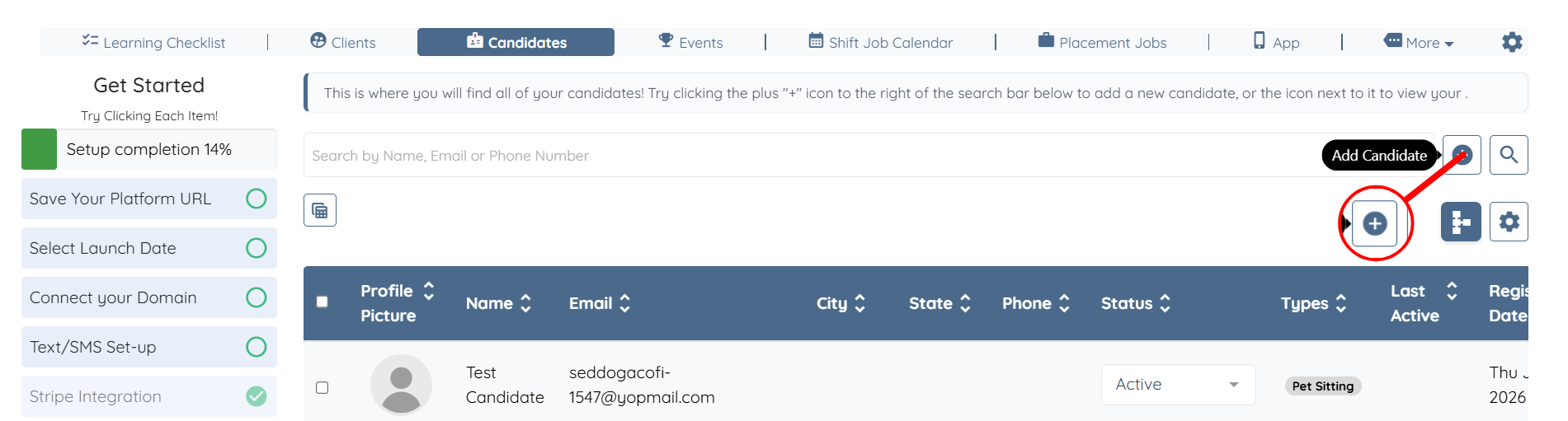 Step 2: Click the + icon to add a new candidate.