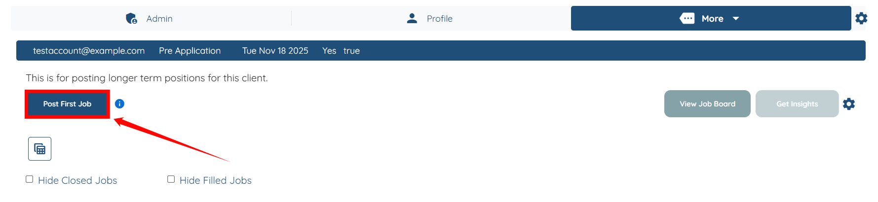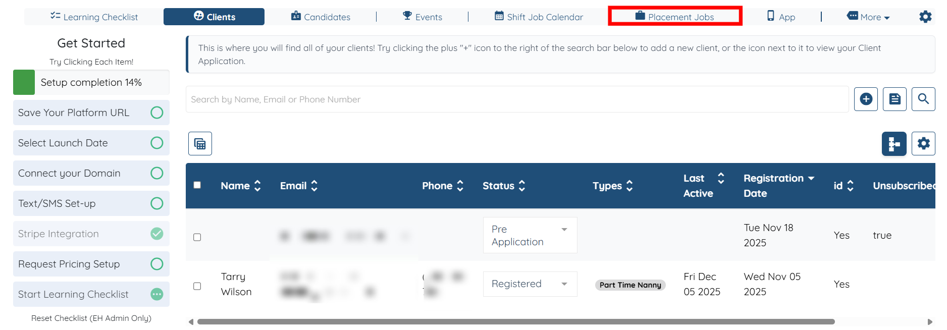 Create a placement job directly from the client’s profile. Follow the steps below to add a new placement job for a specific client.