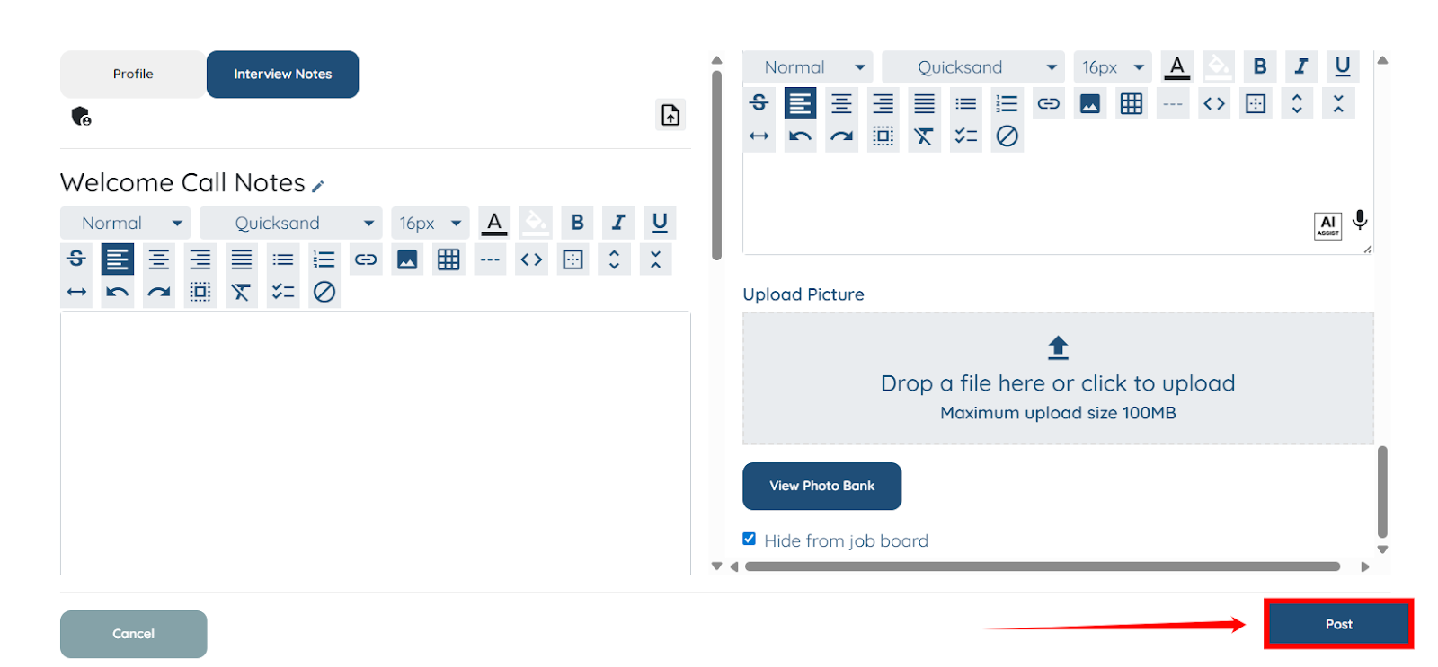 Step 6: Once you fill out all the details, click the Post button to create the job post.