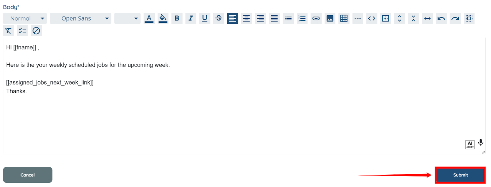 Step 7: Scroll down and click the Submit button to rebroadcast the email.