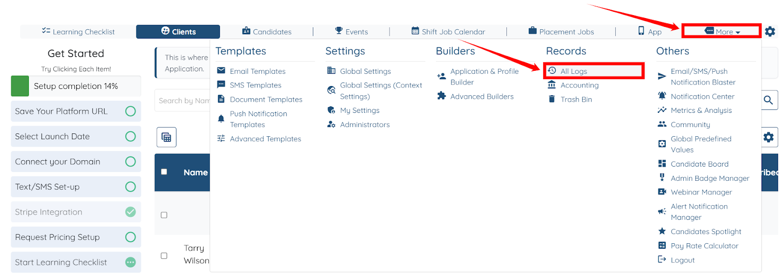 Step 1: Log in to your agent dashboard and click More > All Logs, as shown in the screenshot below.