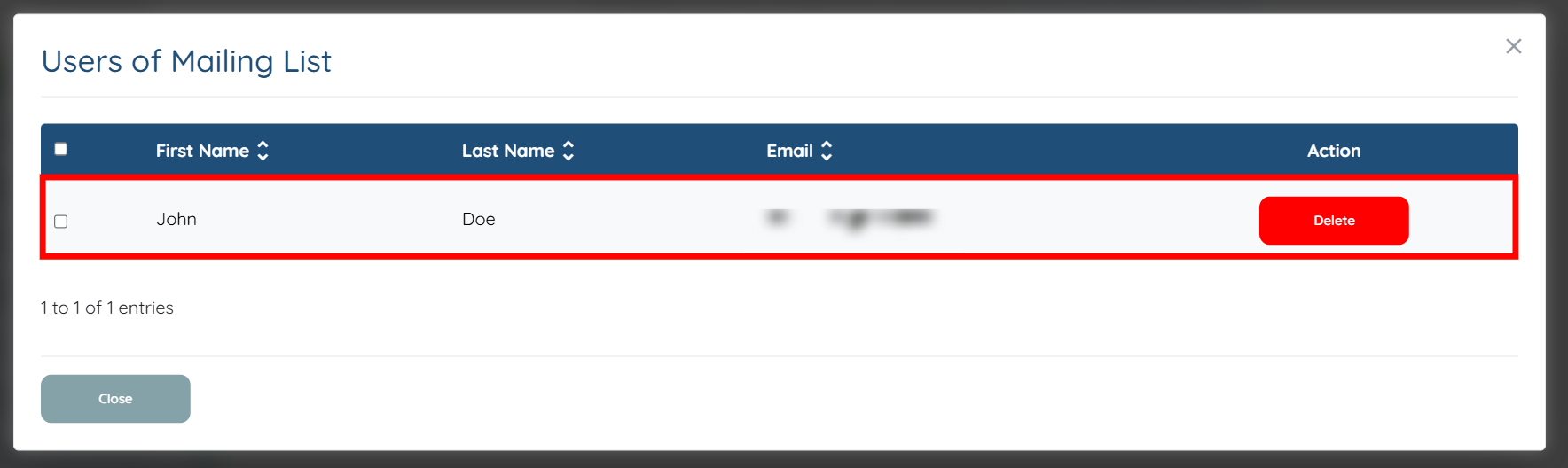 Here you can view the mailing list you have newly created.
