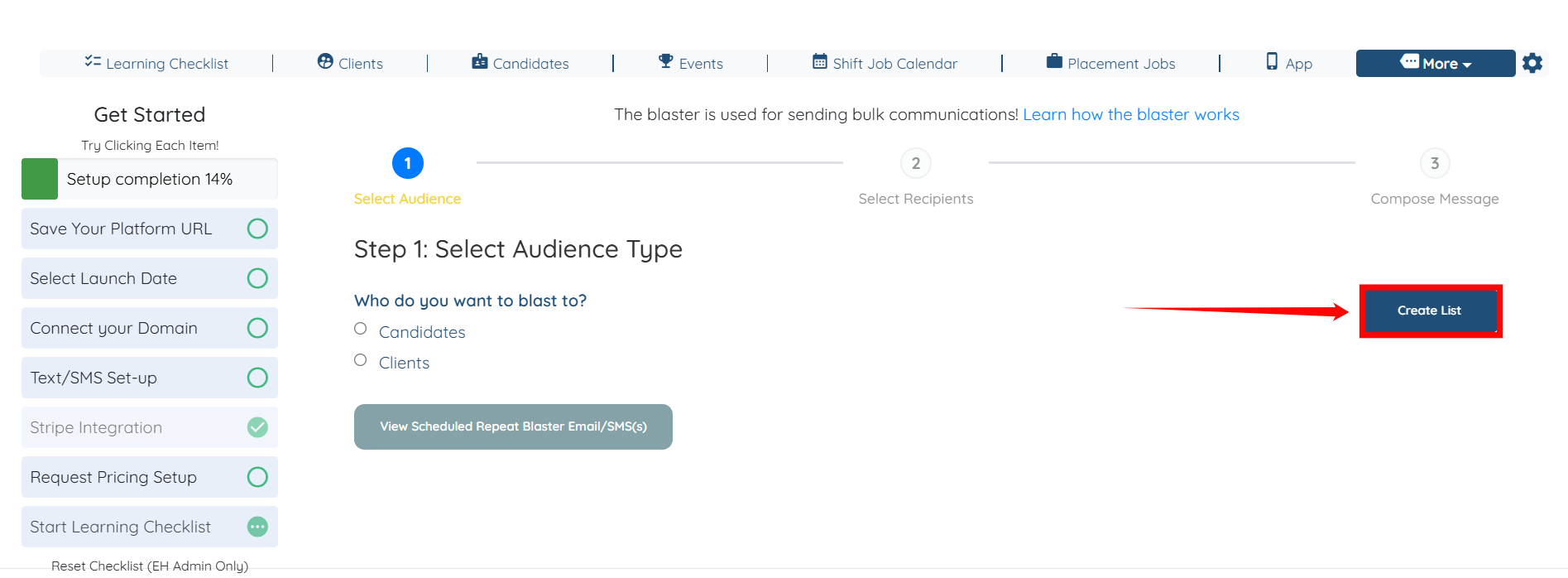Step 2: Click the Create List button to start creating the mailing list.