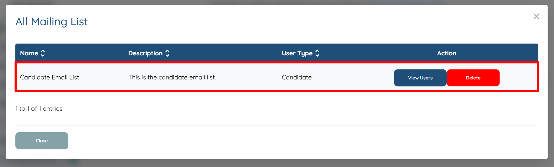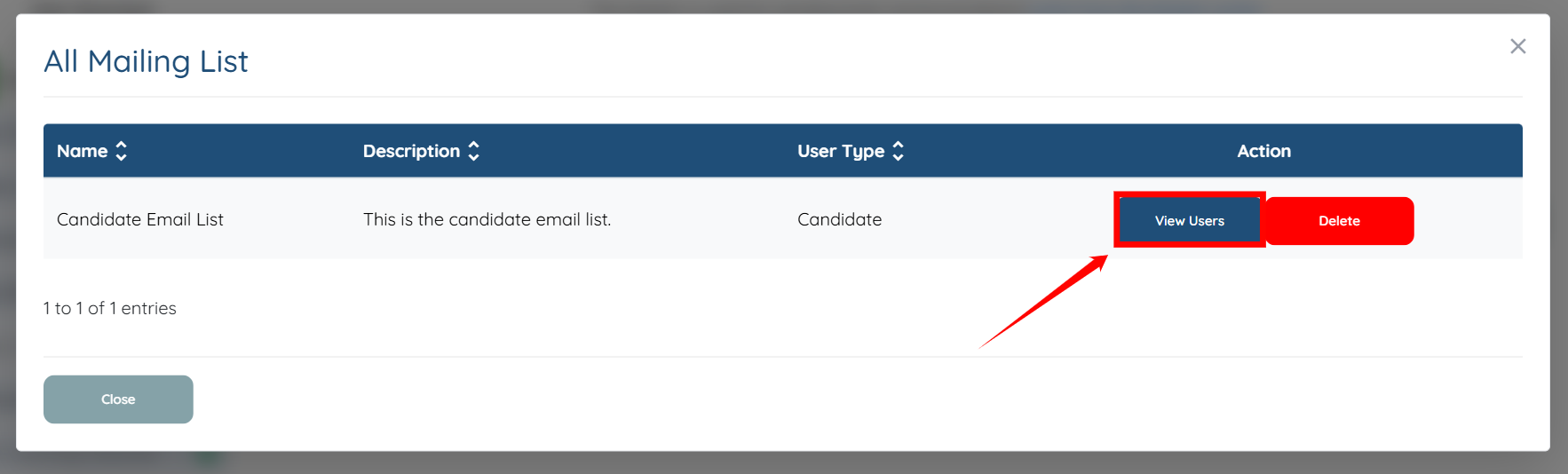 Step 6: Click the View Users button for the mailing list to which you have added the candidate.