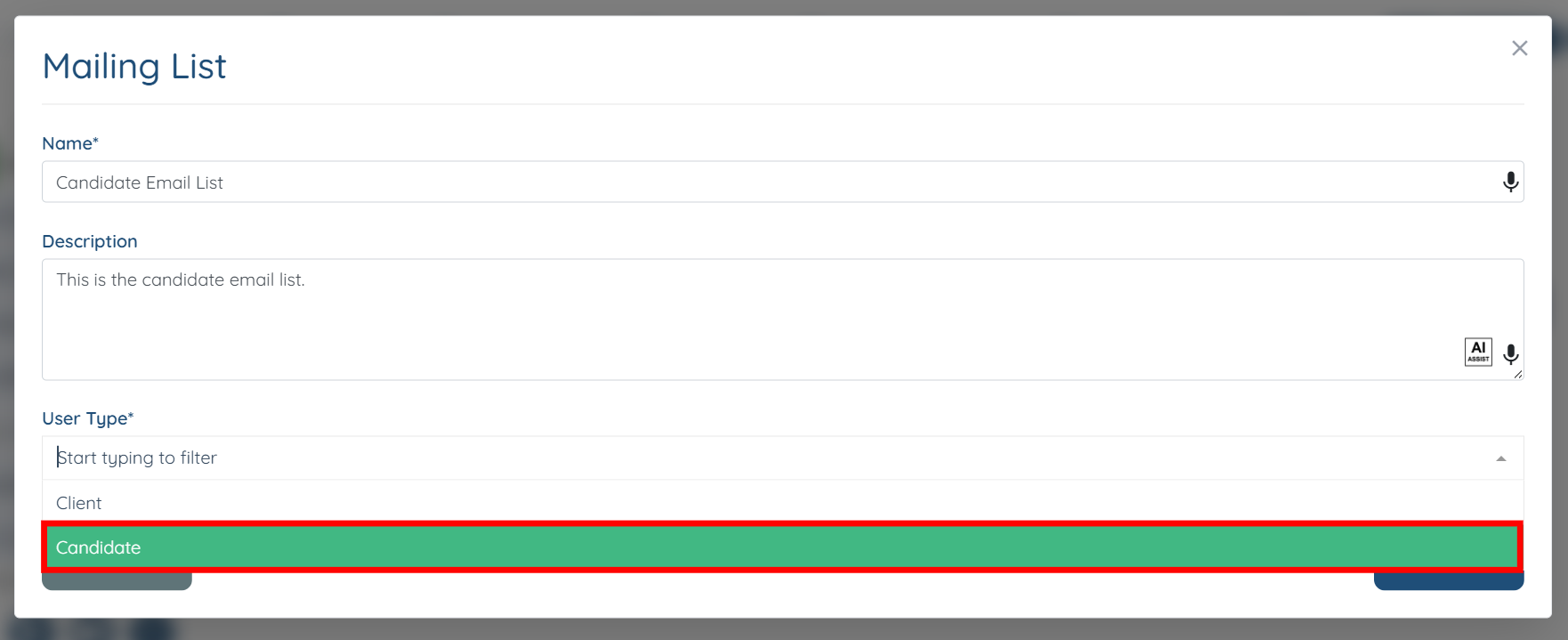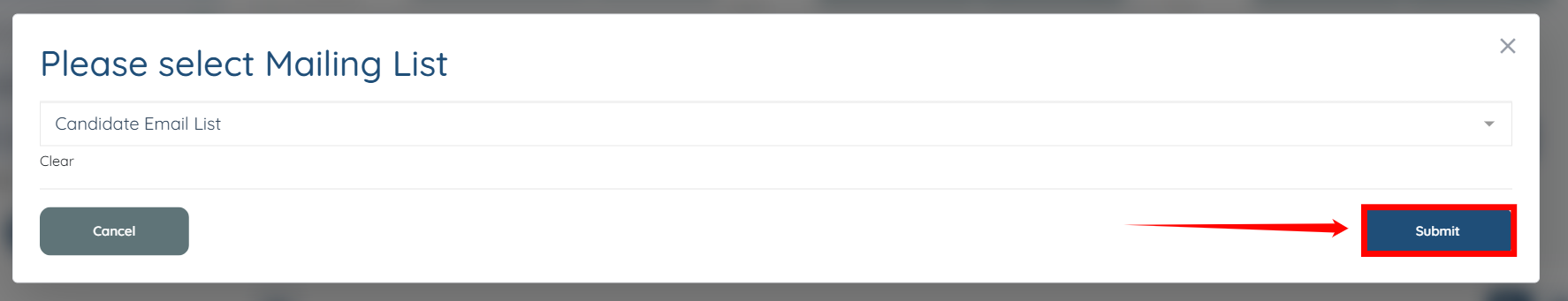 Step 3: Select the mailing list to which you want to add the selected candidate. In our case, this is the Candidate Email List.
