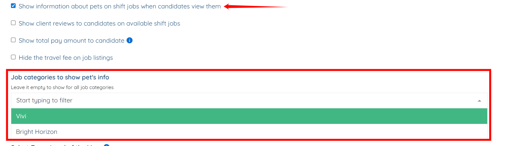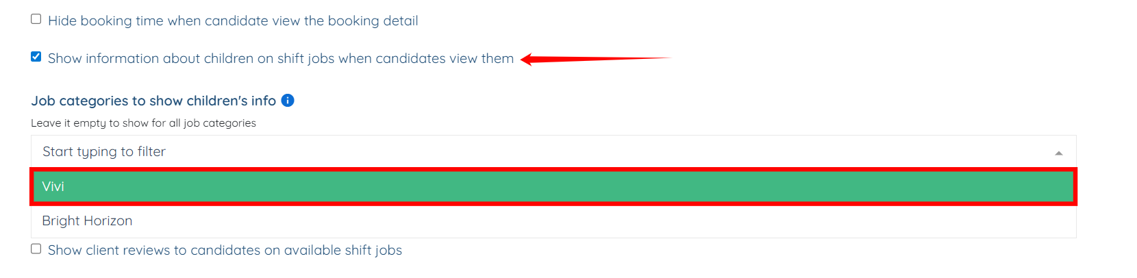 Step 8: Scroll down and check the Show information about children on shift jobs when candidates view them checkbox.