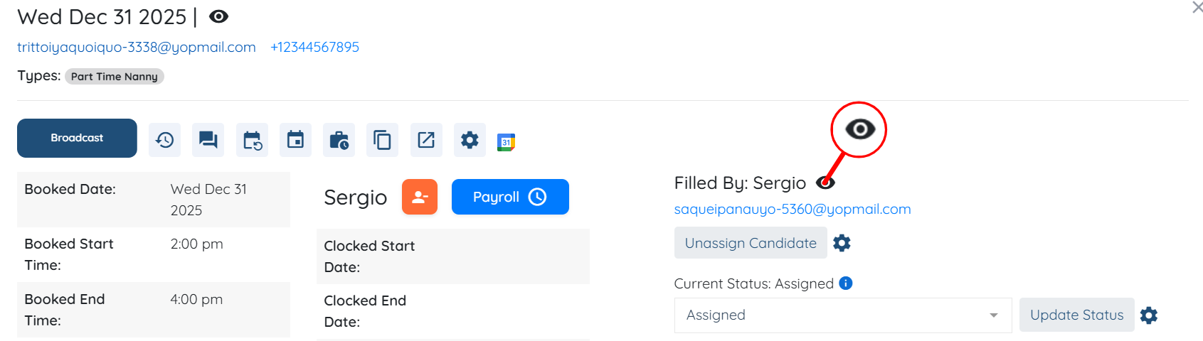 Step 2: Scroll down and open the shift job in which the candidate is already assigned.