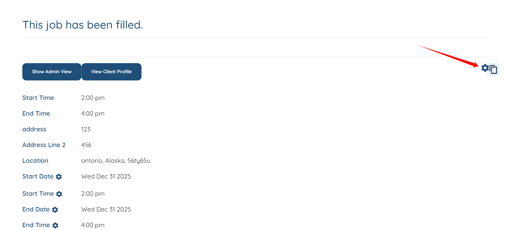 Step 7: Click the Gear icon on the right-hand side of the job listing.