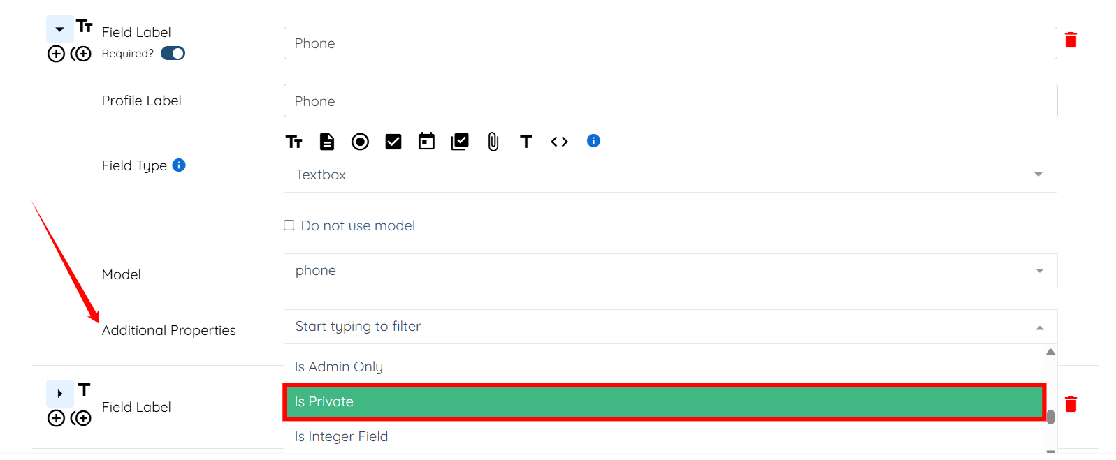 Step 3: In the Additional Properties field, select the Is Private property from the dropdown list.