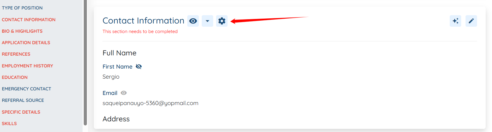 Step 2: Click to open the candidate profile for which you want to hide specific sections or questions.
