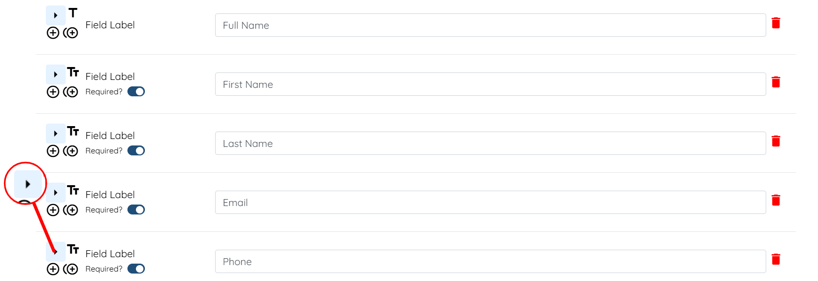 Step 2: Locate the field you want to hide, and then click the arrow button, as shown in the screenshot, to expand the field details.