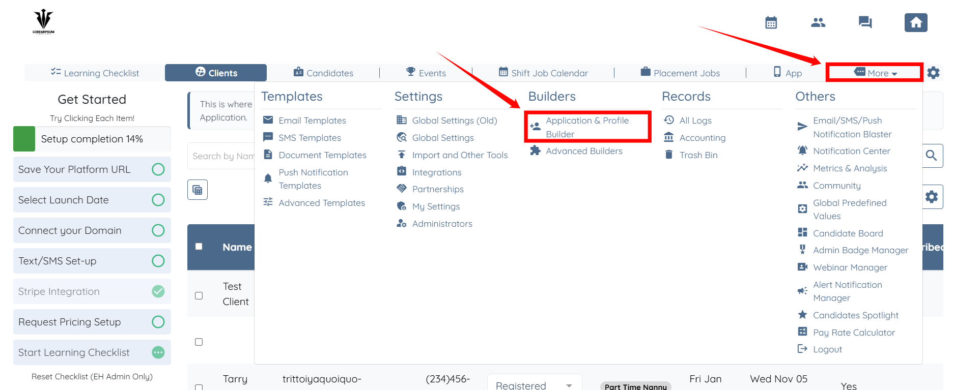 Step 1: Log in to your agent dashboard, and click on More > Application & Profile Builder as shown in the screenshot below.