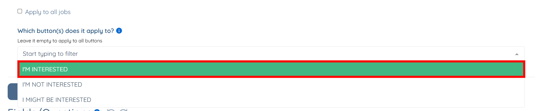Step 5: Select the option from the dropdown for which you want to customize the questions.