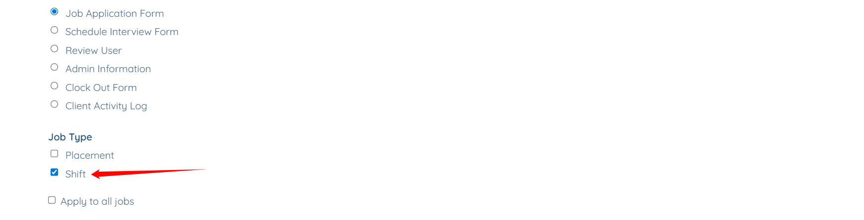 Step 4: Select Shift option as the Job Type.
