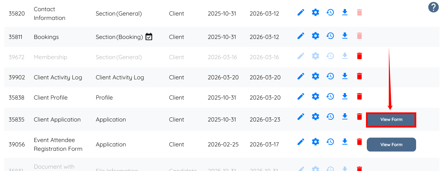 Step 10: Click the corresponding View Form button of the Client Application.