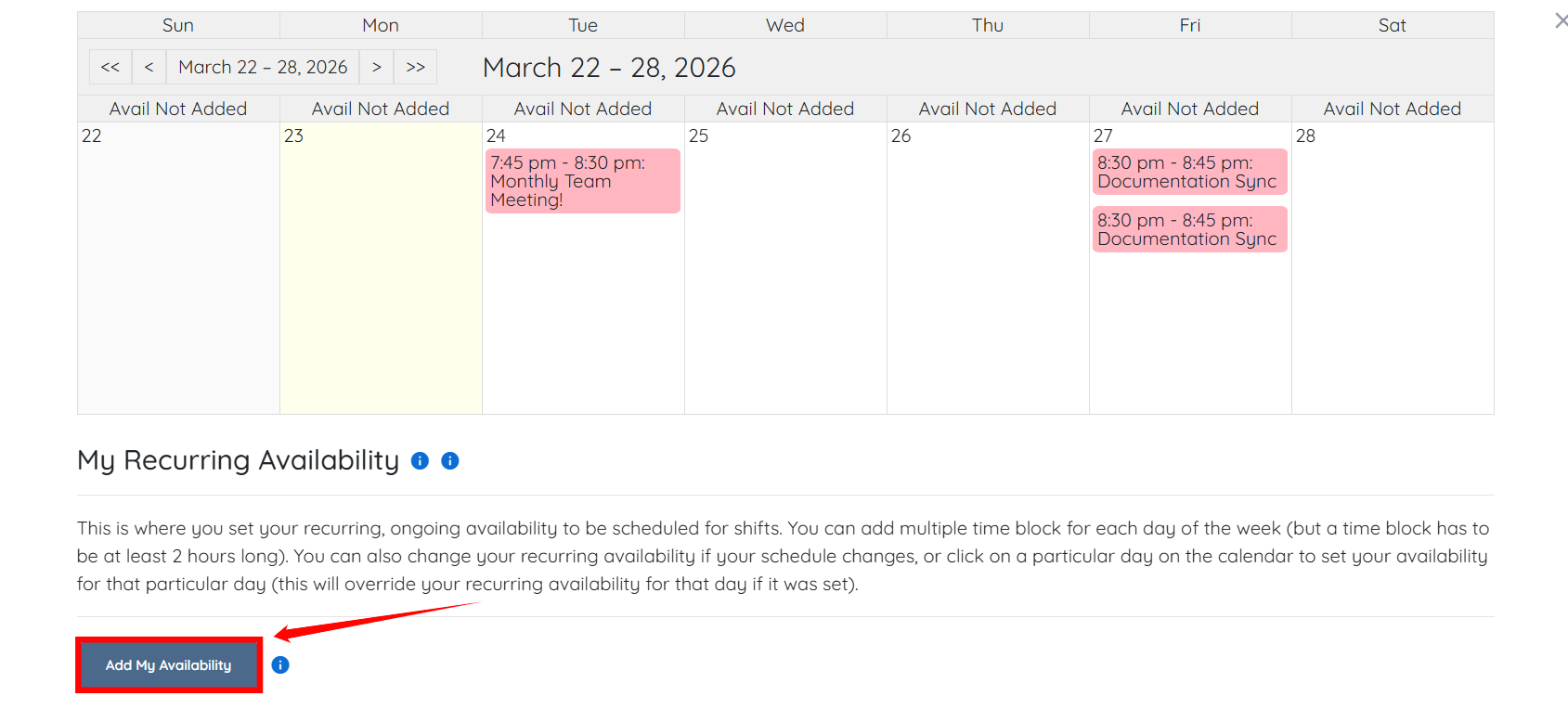 Step 4: Scroll down and click Add My Availability button.