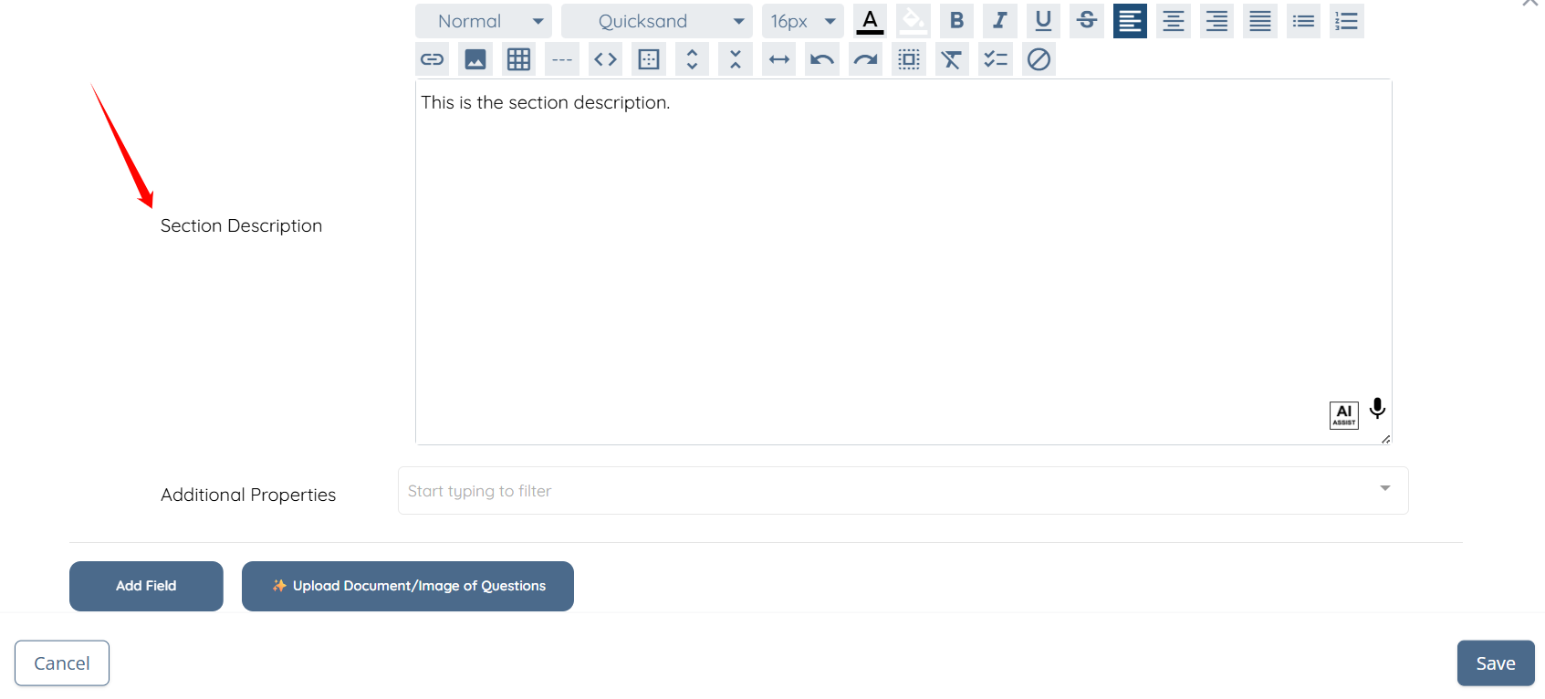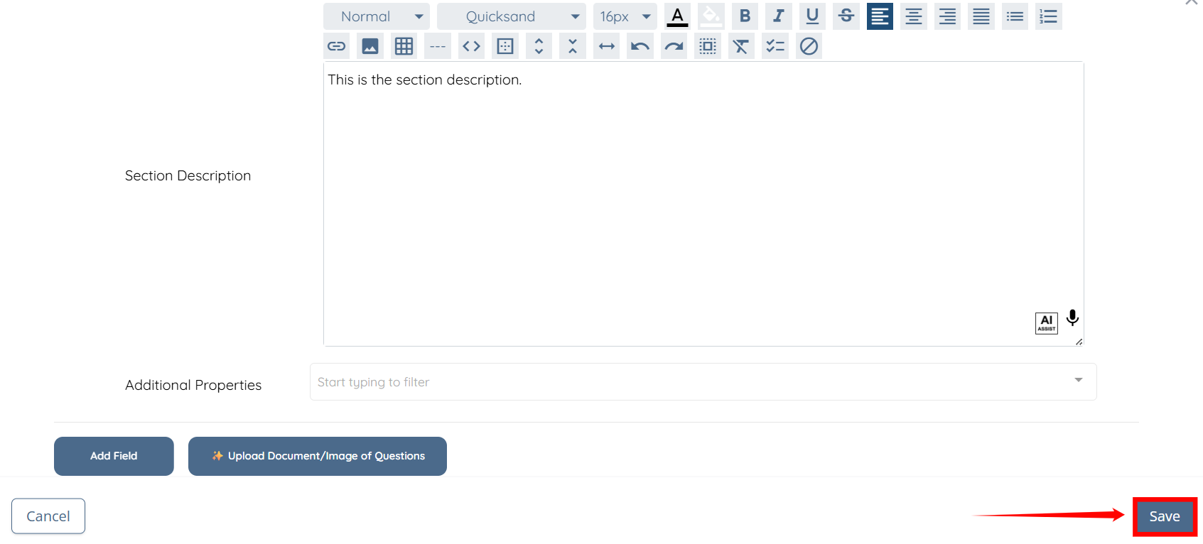 Step 8: Enter the section description if you choose to include one.